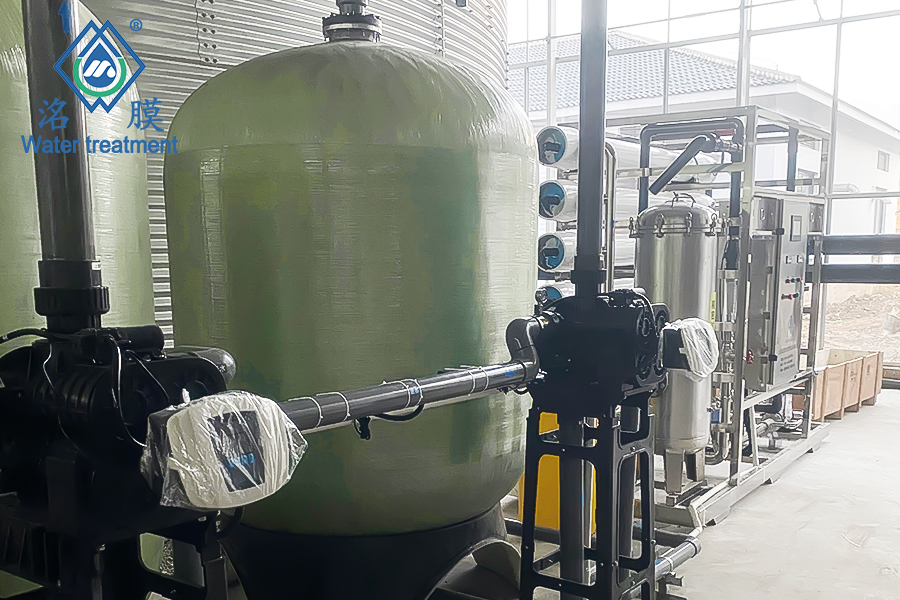 原水:自来水处理用途:喷雾灌溉处理工艺:石英砂→活性炭→精密过滤器→反渗透膜组处理量:12T/H